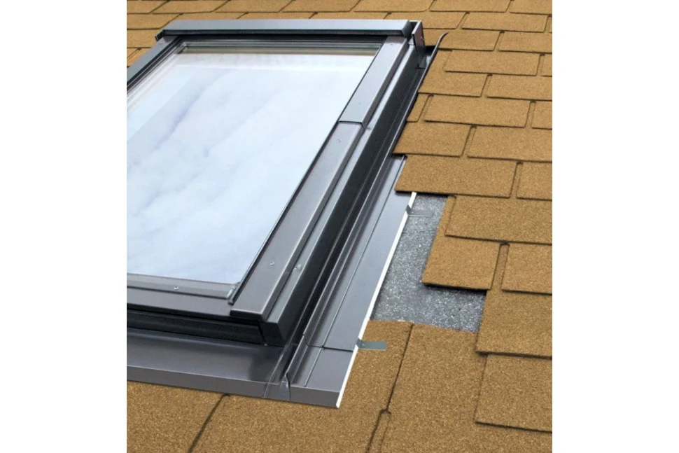 Этот тип оклада позволяет соединить окно с плоскими кровельными материалами: рубероид, кровельное железо, битумная черепица, толь, различные непрофилированные кровельные материалы до 10 мм.