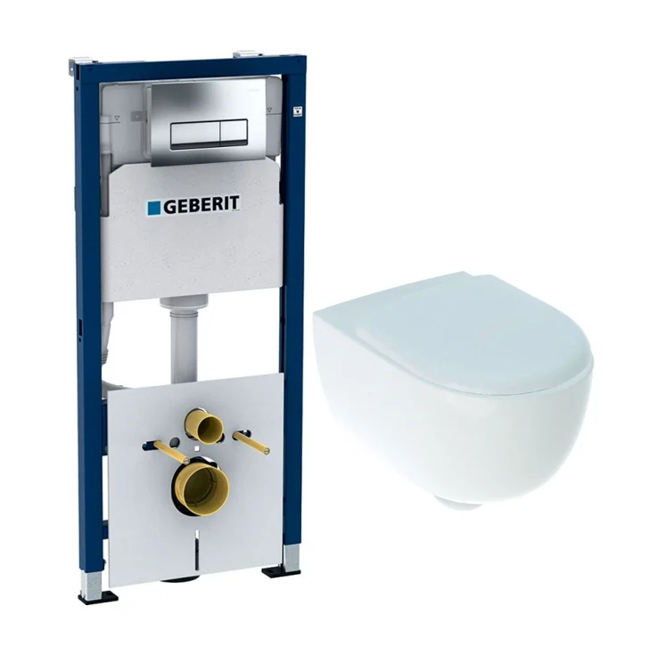 Унитаз подвесной GEBERIT Comfort безободковый Rimfre, сиденье микролифт, с инсталляцией Geberit Duofix 458.128.21.1 4 в 1 с кнопкой смыва Delta51