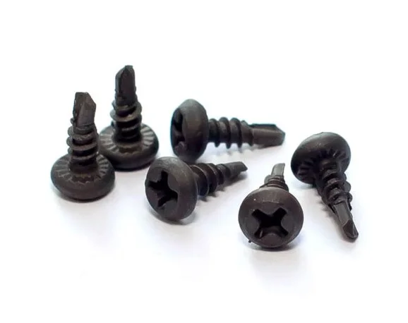 "Чёрные" саморезы получаются за счет фосфатного слоя на металлическом изделии, который улучшает сцепление лакокрасочного покрытия с крепежом. Саморез «клоп» фосфат - лучший вариант при работах под покраску. Если саморезы покрыть битумным лаком, то их защитные характеристики возрастают, и они применимы в условиях повышенной влажности.
