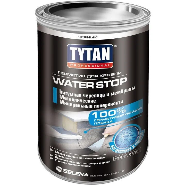 Цена указана за Герметик битумный кровельный черный TYTAN Professional WATER STOP 1,8кг